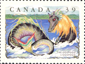 1990年,加拿大邮政发行了一套邮票,其中一枚就是根据许多目击者共同描述的特点画下的欧肯纳根水怪模样,猛一看,其实和中国传说中的马首蛇身的龙相差不大。